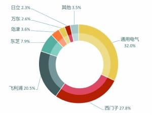 《2014中國(guó)醫(yī)療設(shè)備售后服務(wù)調(diào)查報(bào)告》顯示,通用、飛利浦、西門(mén)子的GPS組合,在CT、核磁共振、核醫(yī)學(xué)、血管造影機(jī)等幾類(lèi)大型醫(yī)療設(shè)備中占據(jù)超過(guò)80%的市場(chǎng)份額。其中,三家企業(yè)在血管造影機(jī)類(lèi)設(shè)備的市場(chǎng)占有率達(dá)91.1%。
